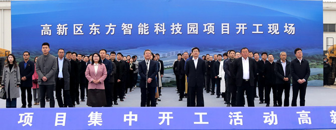 3月13日上午,烟台市举办2021年全市114个重大项目集中开工仪式,拉开了烟台万亿投资的序幕。活动采用视频连线的形式,分为1个主会场,12个分会场。其中高新区分会场设在公司成都琪部落科技有限公司智能科技园现场,这标志着东方智能科技园区正式开工建设。